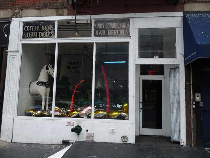 EARLIER this week I mentioned the presence of a small building from the 1820s, hidden in plain sight on the Bowery opposite Rivington Street. Today, here’s another Bowery relic, of somewhat recent vintage. Presently, #219 Bowery, north of Rivington, houses objkt.com, which sells art using blockchain. This variety of alternative money has always baffled me, and the objkt.com website is somewhat dense and also baffling; so I’ll just quote what it says: