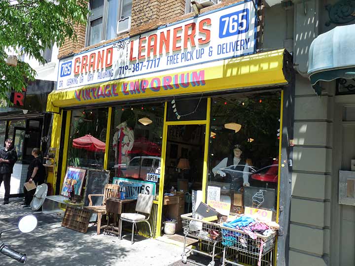 I am in a slight rush this AM and otherwise got nuthin’, so here’s a fine plastic-lettered sign at #765 Grand Street at Humboldt for what was once Grand Cleaners. For reasons strictly coincidental, Brooklyn’s Grand Street seems to preserve more classic sidewalk signs than any other commercial streets in the area. The address is now home to a thrift shop.