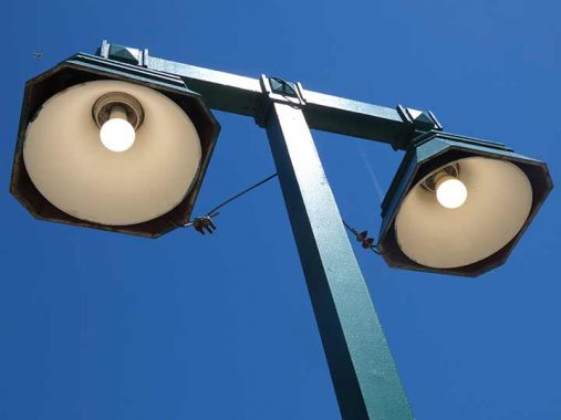 The poles at Sheepshead Bay, though, reveal that the “hoods” don’t have to be sacrificed to make way for new LEDs, as these “screw-in” bulbs reveal.