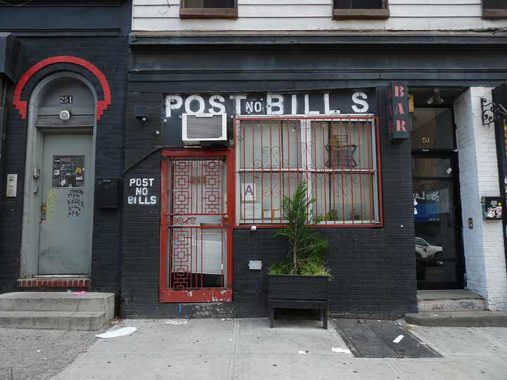 Post No Bills, a bar at #253 Bushwick south of Montrose, takes its name from the common admonition on plywood fences surrounding construction sites to not past ads on the plywood. My question is, why not? Comments are open.