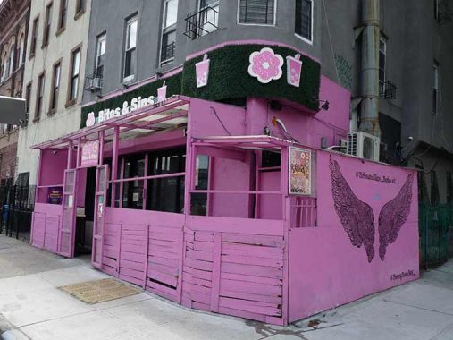 Pretty in pink? Or perhaps magenta. Clearly, Bites & Sips, Knickerbocker Ave. and George Street, believes it is.