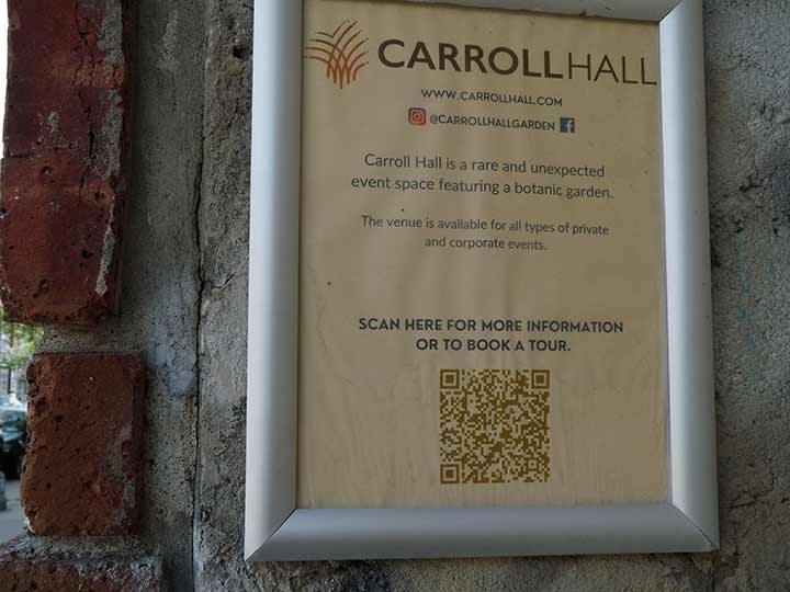 Carroll Hall is a new caterer and event space on Thames Street between Morgan Avenue and Vandervoort Place. The website has some glimpses behind the wall.