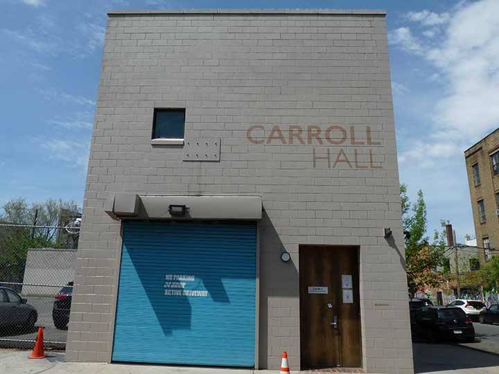 Carroll Hall exists on Lenape land. The site has been farmland, dairy production, ice cream factory, cigar rolling factory and most recently, a refrigerated dairy warehouse in this district of light industry. Elements of recent iterations are used in the current construction: walls of ceramic, brick and rubble, and most of the interior wood is reclaimed from the site. [Carroll Hall]