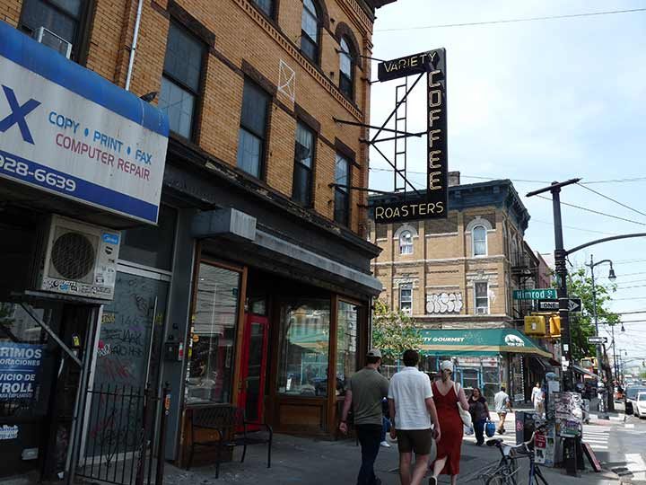 The 1200-square-foot space sits on a sunny corner of Wyckoff just south of the L train, on a strip largely populated by Latin American groceries and old-school businesses–nothing too fancy. The renovation of the airy space includes a new storefront, hand-built bar, and a custom chandelier (Variety is and has always been all about the chandeliers) from Conant Metal & Light in Compton’s home state of Vermont. (Those handsome industrial sconces above the roasting area in back are, on the other hand, utility lights from Home Depot.) Only the refinished brick interior remains of the original space. [Sprudge]
