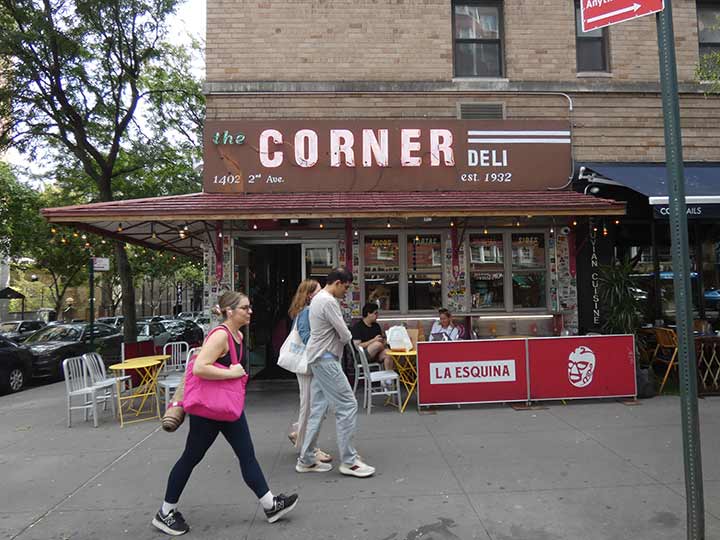 I knew I had seen this sidewalk sign for Corner Deli before, as I was pacing around the Upper East Side at #1400 2nd Avenue at East 73rd Street. It turned out I had in fact seen it twice before. It turns out that this is an uptown branch of La Esquina at Kenmare and Lafayette, which also has a movie theatre-style marquee on its building.