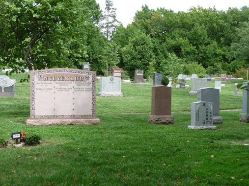 Some of the newer occupied plots in Green-Wood are occupied by Asian American interments.