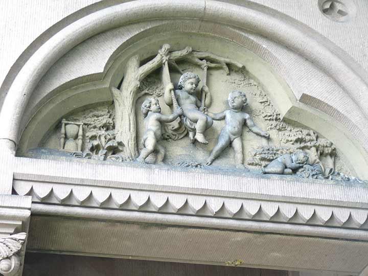 Meanwhile here are two of the four sculptures depicting the “Ages of Man” by British sculptor John M. Moffitt (1837-1887) carved in brownstone on the lounge exterior walls.