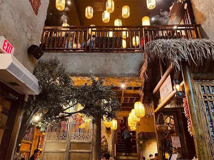 At 39-16 Prince Street is a private alley that hosts three Chinese restaurants as of 2025: Beijing Hot Pot, Szechuan Opera, and Szechuan Mountain House, which all have that wooden traditional village interior. Sometimes the diaspora is as good at preserving traditional architecture as the historical homeland. Also spelled as Sichuan, this mountainous province in southern China invented the kung pao chicken, among other items that are standard on Chinese-American menus.