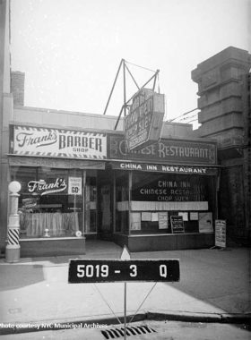 But it wasn’t the first Chinese establishment in Flushing. Recent generations of Flushing residents remember the small shop at 39-20 Main Street as Barone’s Pizza, which was in business from 1971 through 2016. It is easy to assume that the pizzeria predated the Chinese businesses, but a city tax photo from 1939 shows China Inn Restaurant at this site.