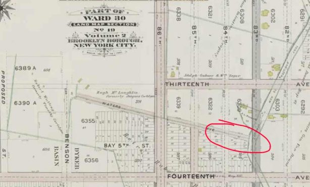 Never go a day without learning something new and heretofore, I never knew there was a road called Waters Avenue in Dyker Heights. It went at an angle against the yet to be built street grid from 83rd Street SW to Benson Avenue between 13th and 14th Avenues. This was long before Dyker Beach Park and the golf course were built in the 1920s, and originally, streets were gridded there. This explains why the numbered “Bay” streets begin at Bay 7th: the park and the golf course were built atop where Bay 1st through 6th had been laid out. Were they ever built? I suppose anyone who can answer that question is gone now.