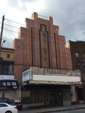 Since the Paramount was featured in Forgotten NY the Book in 2006, various schemes have been floated to reopen it. When the building was sold in 2009, a major renovation was embarked upon to turn it into a caterer and concert hall. That didn’t pan out. Another renovation was begun in 2016 to turn it into an upscale restaurant and caterer, but apparently gritty Stapleton is still a tough sell for that kind of thing. Unfortunately, the reno work stripped it of its 1930s marquee, seen in this Untapped Cities article, and in my photo from a few years ago. UC, which has the knack of getting inside places, has some interior shots, as does Scouting NY in 2014. A Reddit piece in 2021 claimed it was about to be demolished. But still, it persists.