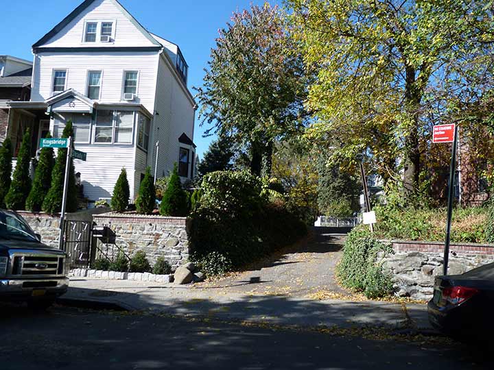 YOU can be forgiven if you completely overlook Shrady Place, a dead end on Kingsbridge Terrace just south of Fort Independence Street in Kingsbridge Heights. The Terrace runs atop a steep ridge located in this very hilly part of the Bronx. It’s likely that residents of Shrady Place are quite happy to be overlooked, as this is a very quiet enclave. When ducking in one weekend afternoon I half expected to be shooed out, but it’s what I refer to as a public private lane.