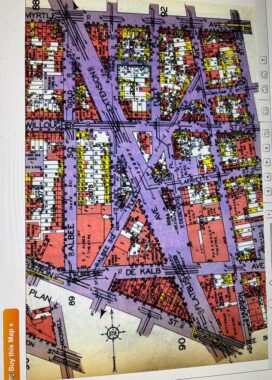 Oddly, among the surviving short streets and alleys, there are a number of streets called Fleet. Here I have excerpted a section of the Belcher Hyde 1929 Brooklyn Desk Atlas from Historic Map Works. Now, HMW does not want you to do screen grabs of many of its maps, including this one, and so the site does an automatic zoom way in tight when I try a screen grab. There’s more than one way to skin a cat and I took a photo of the atlas page with my IPhone and emailed the photo to myself, where I could reduce it to web friendly size, and presto.