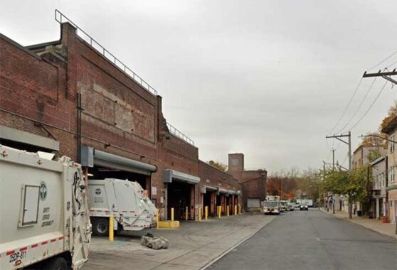 Jersey Street begins at Victory Boulevard, the historic 8-mile trans-island route that runs from east to west. This road was built in 1816 as Richmond Turnpike, a toll road by a company owned by Vice President Daniel Tompkins. It was renamed Victory Boulevard following the end of World War One. Between 1949 and 1968, it carried the state route number 439A. The sanitation garage here is architecturally uninspiring but on the side facing Brook Street there is a historical item on the wall. The only legible word here is “company,” hinting at the garage’s previous occupant, Staten Island Coach Company, initially for streetcars and then for buses.
