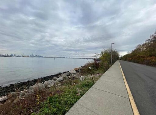 Between the minor league ballpark and Jersey Street, an extension of this road shown on maps as North Shore Esplanade runs on the route of the train line, and there is sufficient space here for a revived North Shore Branch. Since the turn of the millennium, there have been proposals drafted to restore transit here either as a busway, railroad, or light rail. For now, select bus service and bike lanes on Richmond Terrace will suffice.