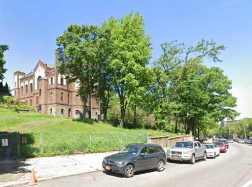 Agudath Achim Anshe Chesed opened in 1913, featuring stars of David in the rose window and atop the pediment. The synagogue’s name translates as “Union of Brethren People of Kindness,” nicknamed by its members as Triple A. As the Jewish community’s fortunes grew from working class to middle class, many members moved into single-family homes in other parts of Staten Island. In 1970, the congregation purchased a former Methodist church at 641 Delafield Avenue, holding services through 2005. The building suffered a fire in 2015 and was then demolished for a set of residences.