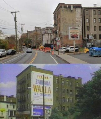 On this corner at 514 Richmond Terrace is a fading ad whose lettering is illegible, but a tax photo from the 1980s reveals a congressional campaign mural for Barbara Walla, who ran as a Democrat in 1986. She lost to incumbent Guy Molinari, who later served as Borough President. Although the North Shore of Staten Island is reliably Democratic, the rest of this borough is a Republican stronghold, marching to the opposite tune of the other boroughs.