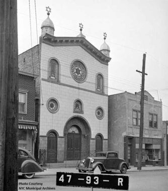 On a visit to this street, I noticed a shuttered Church of God in Christ for sale, likely to be demolished in favor of a commercial structure. Looking at its design, it hinted at its original use as a synagogue, as it resembles the landmarked Tifereth Israel in Corona. “Christ is the A” seemed like the fitting message for a congregation in decline, unable to afford the high cost of upkeep on this century-old building.