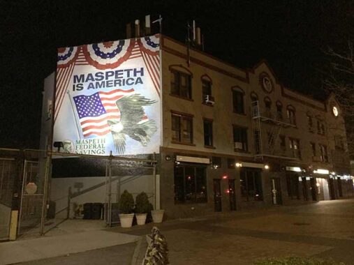 After a walk of about 7 hours, it was appropriate to finish at Maspeth Memorial Square, considered to be the center of town at Maspeth Federal Savings. The square contains war memorials, the town Christmas tree in season, a huge American flag and a memorial to 9/11 victims from Maspeth. Engine Company 288/Haz Mat 1, located just north of the square, lost 19 men on 9/11/01, the most of any firehouse in the city. The town gathered to watch the horror unfold from this site on that horrible day. The site offers a commanding view of almost the entire Manhattan skyline.