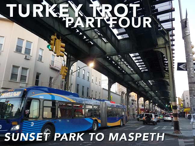 THURSDAY, November 23, 2017, Thanksgiving Day, dawned sunny and bright. I usually have been at one cousin or the other’s Thanksgiving extravaganza but that year, they were doing it on the weekend, thus I was at loose ends. Perfect photography conditions, though, if I didn’t mind the harsh shadows. So I hatched a plan. Why not link two neighborhoods that have nothing to do with one another with a walk? I arrived at Sunset Park to Maspeth, which would take me through Borough Park, Lefferts Gardens, Crown Heights, Bedford-Stuyvesant, Bushwick, Ridgewood and Maspeth. I walked from the light of day to the dark of night, nonstop (maybe a bathroom break, I forget). To my surprise it totaled only 12-13 miles; I know people who have walked triple that in one walk. It’s 8 years later, and at age 68, my back as well as other parts will no longer permit a nonstop walk like that. It’s not my longest: that was the full length of Metropolitan Avenue, Williamsburg to Jamaica, in May 2015.