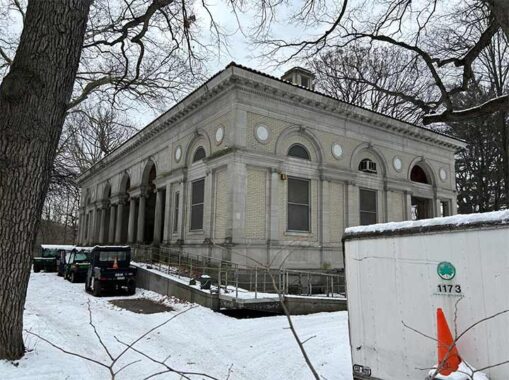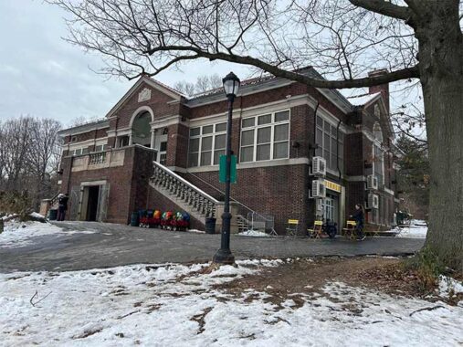 Facing the Long Meadow in Prospect Park are two historic buildings, unique in their design but diverging in their history with the Picnic House open to the public for events, while the Tennis House is fenced-off as a storage space.