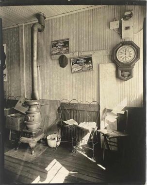 Though Abbott concentrated mainly on Manhattan, she worked all over the city. Featured in the book are a pair of photos she took in Spuyten Duyvil in scenes that have utterly disappeared today. If she had taken a photo of the exterior of this country store whose address was at #2553 Sage Place, it isn’t in the collection. Yet, more evocative photos of a lost era can’t be found. noon sun streams in and falls on a wood plank floor. The room is warmed by a pot belly stove (you can stiol find one in McSorley’s on East 7th Street today). A ticking wall clock records the 11:50 AM time. On the wall are a pair of ads for the Havranek Brothers retail meat business. The Havranek Brothers were Czech immigrants who sold meat in Yonkers from 1920-1949, and the business, surprisingly, is well-archived online.