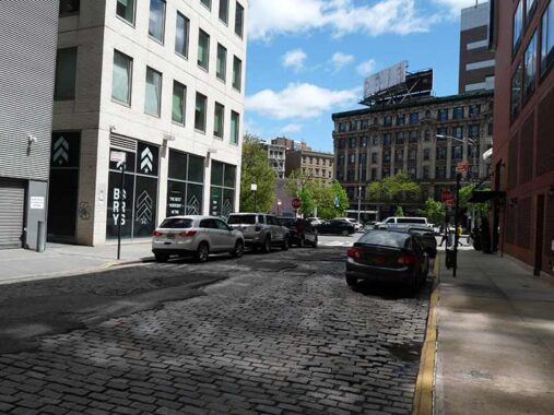 When in this part of Tribeca, I check on St. John’s Lane, an Belgian blocked alley that runs between Beach and Canal Streets west of 6th Avenue. Happy to see the block paving still there, and no obscuring scaffolds, at least in 2026. FNY wrote about it extensively in 2022, and can’t add any more than that here.