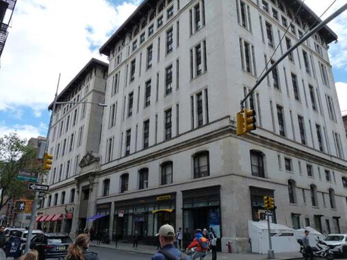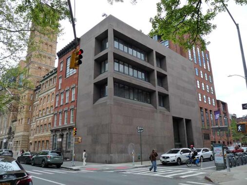 Vanderbilt Hall, between West 3rd Street, Washington Square South, MacDougal and Sullivan, which houses New York University’s law school, was completed in 1951 and looks older than that: it was built during an era when architects and developers still often strived to create contextual architecture that attempted to fit in with its neighbors. Nevertheless, during its development there was a considerable effort to derail it because several older buildings on West 4th and MacDougal were demolished to make way for it including former residences of authors and playwrights Willa Cather, Theodore Dreiser, and Eugene O’Neill, for which it was known as “Genius Row.”
