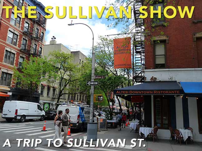 SEVEN years after walking up Thompson Street, which runs north in Manhattan from Broome Street to Washington Squarein Soho and the Village, I walked north on its brother, Sullivan Street, one block east. I have to confess I do enjoy walking the ultra-urbanized streets full length more than the natural or pastoral ones in eastern Queens or Staten Island; to me urbanity is more engaging though I recognize the worth of pastoral. I choose to live in a garden apartment complex in Little Neck, far away from the hustle; I can get a LIRR train two blocks away into all the urbanity I can stand. I think I’ll do more of this, if the street in question is interesting enough for my infrastructural bends.