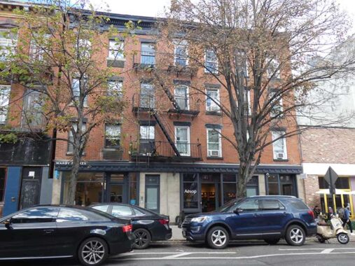 I always liked residences-above, storefronts below urban template though I have never lived above a store. In this case, the stores are the Warby Parker eyeglasses chain and Aesop Australian luxury cosmetics brand, at #53-57 Bergen.