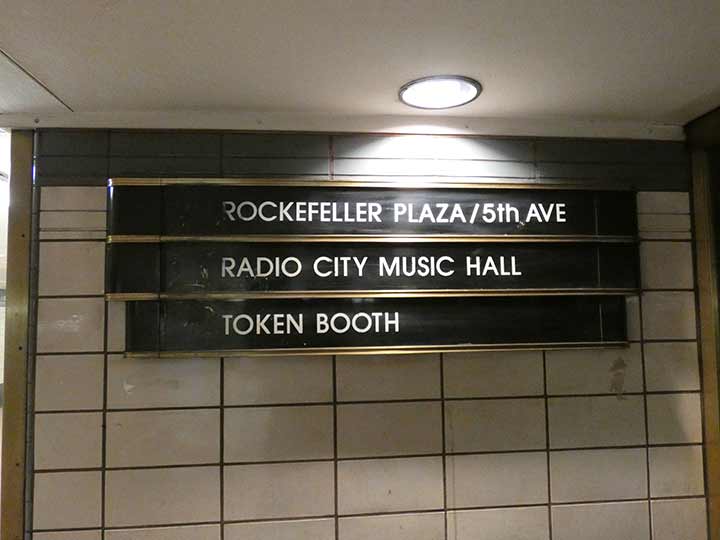 Though signage in the retail area has been updated to look more modern, the actual passageway area is something of a time capsule, combining 1930s tilework with 70s-era design. The signs are in the Avant-Garde font, used commonly in the 70s and 80s but somewhat dated now. One of the signs points to a “token booth.” The MTA has been through two different fare collection methods since tokens were phased out in the 1990s, Metrocards and the tap-and-ride OMNY system in which 8fares come from a tapped card or directly from your bank when you tap your phone.