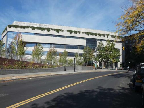 The museum’s building includes two wings: a six-sided building with a pyramid-shaped roof designed to evoke the memory of the six million Jews killed in the Holocaust, and the Robert M. Morgenthau Wing. The six-sided building, opened in 1997, contains the museum’s core exhibition galleries. The Morgenthau Wing, opened in 2003, contains the museum’s offices, theater, and classrooms, as well as the Irving Schneider and Family exhibition gallery. Both wings were designed by Roche-Dinkeloo. [wikipedia]