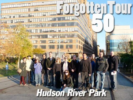It has been awhile since I did a long form page on Hudson River Park. I have not visited often: In 2011, ForgottenTour #50 walked it from the Battery all the way to the Intrepid aircraft carrier, a distance of several miles. That was 15 years ago when all of us (I think) were in better shape. I put myself, and tourgoers, through their cardio paces for most of the 154 outdoors tours, some of which ran to six hours long. It’s still paying off but I have a couple of health issues that prevent me from really walking long distance now. In 2020, I wandered Hudson River Park as far north as Hudson Yards at the west end of 34th Street. I stood “wrong” and wrecked my lower back and had to gingerly limp over to the #7. This time, I walked HRP on a mild October 2025 day up to Christopher and had no mishaps. But they’re always around the corner.