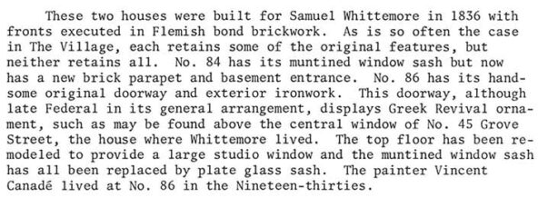 I was attracted to the well-preserved entrance doorway at #86 Christopher, as was the Landmarks Preservation Commission in 1969: