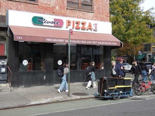 At the corner of Christopher and Hudson, this certainly looks like an old school pizzeria sign, with plastic letters in colors of the Italian flag, red, green and white, but in point of fact, it has been here only since 2014 according to Google Street View. One project I have been thinking about is sampling every “lunch counter” pizzeria in NYC, i.e. the places where I order a slice, take to a table or counter and have it there (rather than sit at a table and order with a waiter, as in restaurants). That’s a pretty daunting task, though, as there are over a thousand if not more in the five boroughs. I’d have to think, except for the grungiest dollar joints, that the quality is more or less very good no matter where in NYC I may go. Since I restrict myself to one slice per week (for health and so I don’t get tired of pizza) this would take a while. Hey, Dave Portnoy does it all over the country. The only pizza I’ve found that I don’t like is in the Artichoke chain: chewy and bland.