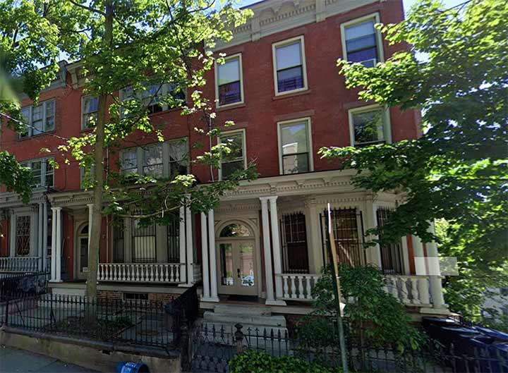 Toward the south end, though, there’s another very small district in an enclave called Brighton Heights, at Westervelt and Corson Avenues encompassing four attached homes, #411-417, called Horton’s Row. I am showing the southernmost two, as Google Street View has slapped its Blur of Anonymity on parts of the other two. The four do have Landmarks protection.