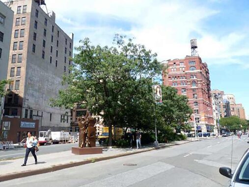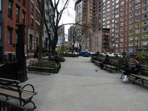 Reggie Fitzgerald Triangle in the West Village honors a neighborhood activist who was among the founders of the Horatio Street Association and a member of the local community board. Kevin visited this park on his survey of West Fourth Street in 2021.