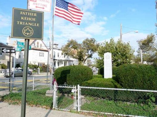 Father Kehoe Triangle, Avenue M at Flatlands Avenue and Ryder Street in Flatlands honors Father James A. Kehoe, who served at the nearby St. Thomas Aquinas Church in the early 20th century. Kevin wrote about him in his 2011 essay on Flatlands Avenue.
