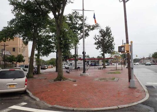 O’Sullivan Plaza in East Elmhurst, Astoria Boulevard, 25th Avenue, and 88th Street, is a triangular park formed by the grid-defiant Astoria Boulevard. It honors local Vietnam War casualty Christopher J. O’Sullivan.