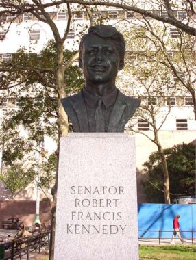The Robert F. Kennedy Memorial at Columbus Park, located near Brooklyn Borough Hall honors the Senator, Attorney General, and presidential candidate. His name also appears on the Triboro Bridge but few New Yorkers call it the “RFK.”