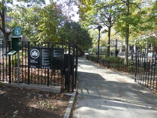 LUTHER GULICK PLAYGROUND is a welcome quadrangle of green located between Broome, Delancey, Willett and Columbia Streets on the Lower East Side. It was founded in 1933 as Bernard Downing Playground, named for a recently deceased state senator, and renamed Luther Gulick Playground in 1985 for an early community organizer whose tenure actually preceded Downing’s, Luther Halsey Gulick ((1865-1918):