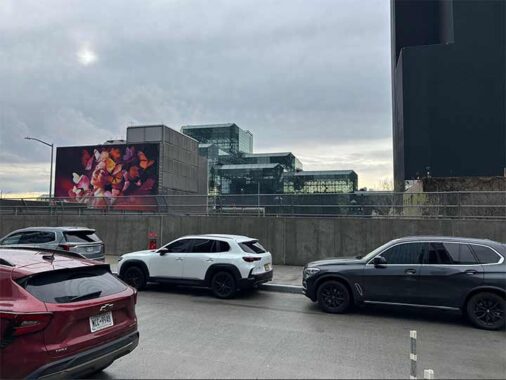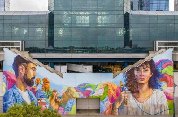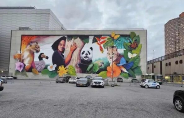 The back side of this building also has a glow-up, as my children would call it. Depicting a woman surrounded by butterflies, Breathe by Adry del Rocio, has the darkened sky referencing the 2023 Canadian wildfires that impacted the skyline of New York.