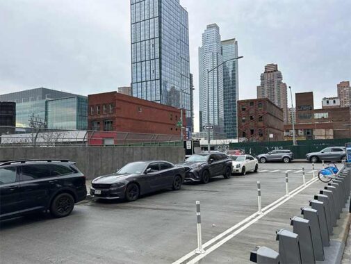 Of interest to Kevin, and certainly Frank Jump is 547 W. 36th Street, a relic of Hell’s Kitchen before gentrification. The fading letters read “Storage Warehouse,” as it was under McNally Transfer Company back in the 1940s. The other old building here with metal bracing is a horse stable, where Central Park’s carriage horses spend their nights.