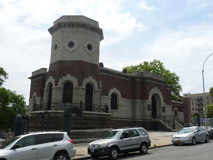 Manhattan’s most prominent Croton Aqueduct remnant is the large gatehouse at Convent Avenue and West 135th Street. This gatehouse served the New Croton Aqueduct and construction was begun in 1884 according to plans by prominent architect Frederick S. Cook. Such gatehouses regulated amounts of water flowing from the underground masonry architect to pipes going to the Central Park reservoir and other points.