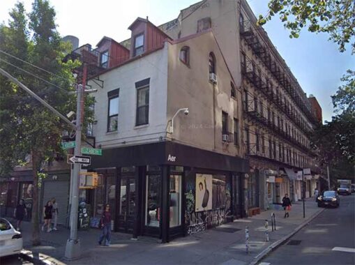 With its sharply peaked roof and dormer windows, I suspected #73 East Houston Street at Elizabeth may be a Federal rowhouse from the early 19th Century, and Tom Miller (Daytonian in Manhattan) proves me correct. It was once home to a brothel. The block of East Houston between Elizabeth and the Bowery once had an entire row of similar buildings; only this survives.