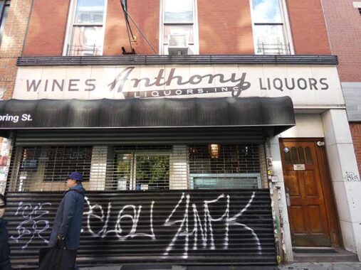 A peculiar attribute of NYC’s liquor stores is that many of them retain decades-old signage, neon or otherwise. The lettering is bold and the color scheme is basic, and the proprietors know enough to let these signs do their jobs and not interfere with them, or add to them with meaningless clutter. This store, #52 Spring, can be found just west of Mulberry and east of Lafayette.