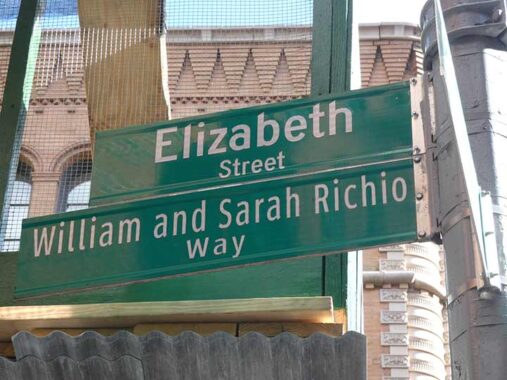 According to NYC former and honorific street name expert Gil Tauber, “In the late 1970’s, William Richio served on the Area Policy Board on the Lower East Side where he fought for the rights of the poor and helped youths with drug problems. Sarah Richio was the founder and Executive Director of the Neighborhood Council to Combat Poverty. Together, they established and helped preserve the Judson Healthcare Clinic on Spring Street.”