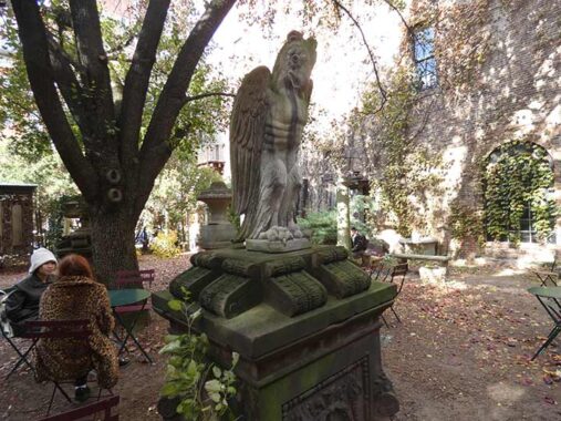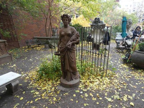 The goddess here is the little-known Hebe (pronounced ee-bee) the gods’ cupbearer on Mount Olympus, and one of Heracles (or Hercules’) many ‘conquests.’ She can also be seen in “temperance fountains” in Tompkins Square Park and Pennsylvania Avenue in Washington, DC.