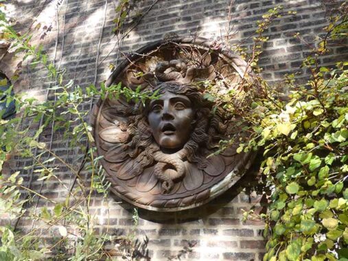 Sculptures of Medusa often were used above doorways as a warning to strangers. Her snake haired appearance turned the gazer into stone; the ancient Greek hero Perseus employed a reflective shield to attack her indirectly and beheaded her.