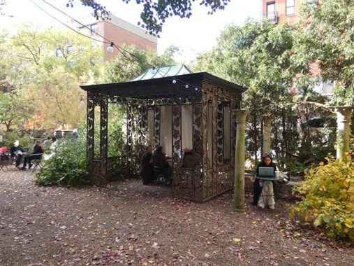 According to some sources, this copper gazebo was designed by Central Park and Prospect Park co-architect Frederick Law Olmsted.